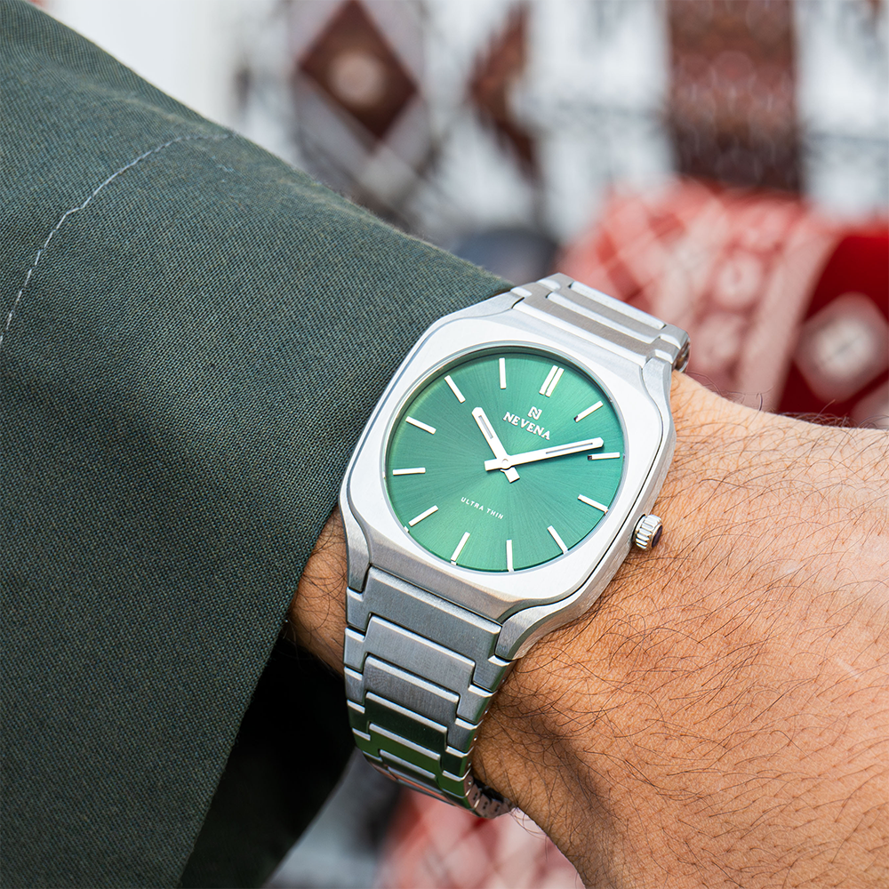 - ساعة المجد الرجالية بسير من الستانلس الستيل الفاخر بجودة عالية باللون الفضي