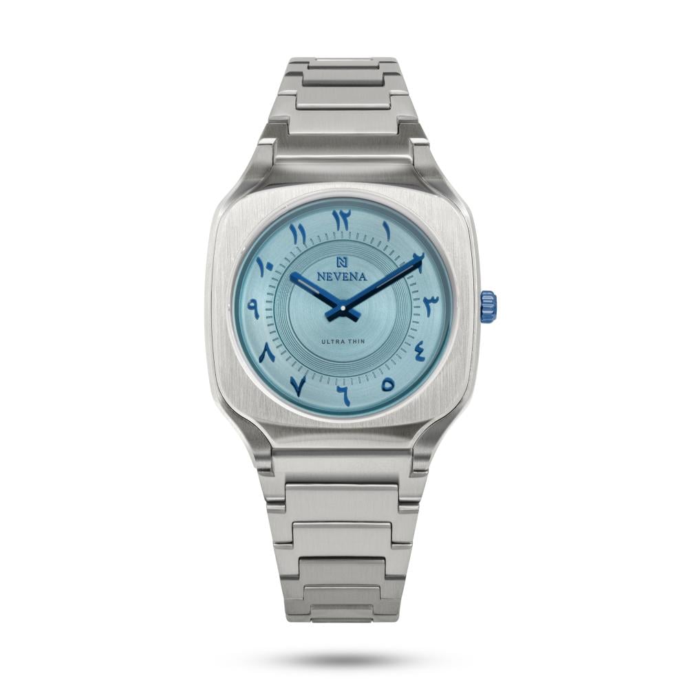 - ساعة المجد الرجالية بسير من الستانلس الستيل الفاخر بجودة عالية باللون الفضي