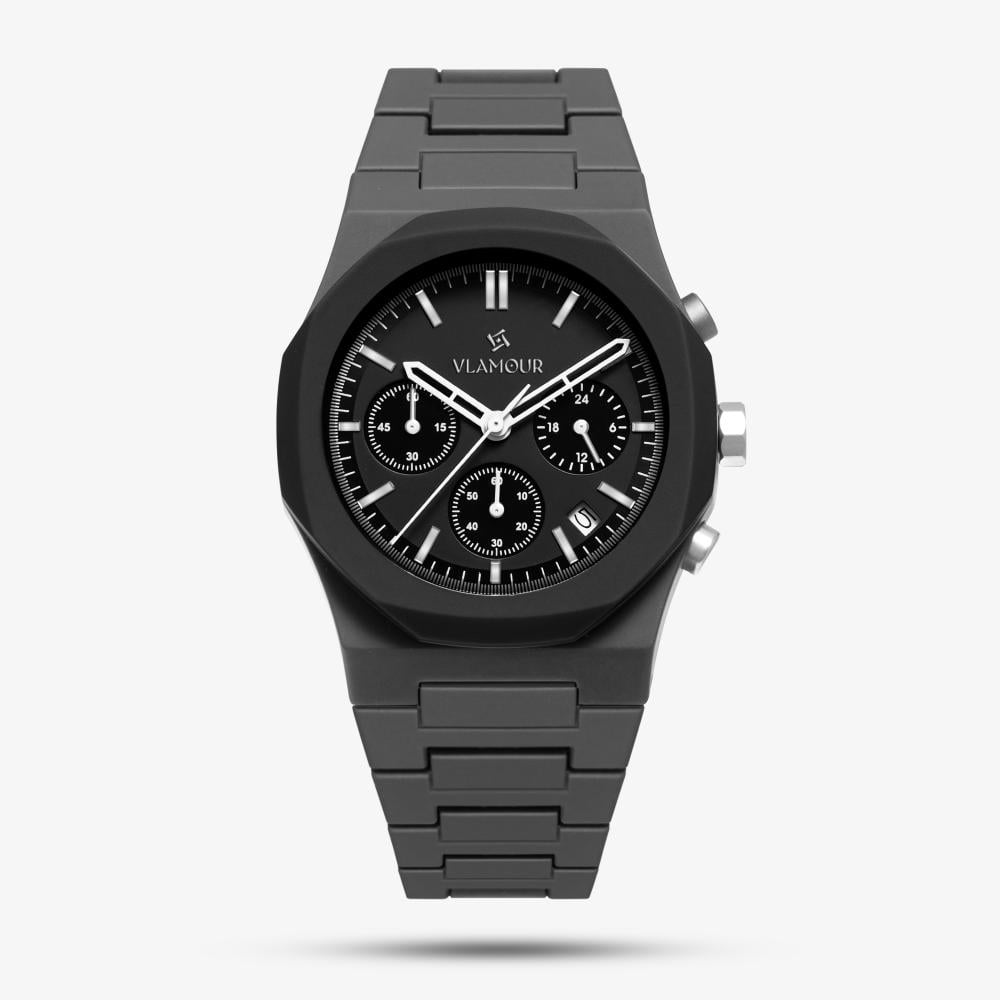 تمتاز ساعة فلامور الرجالية بوجود عدادات كرونغراف احترافية داخل المينا الرمادي الأنيق، لتمنحك القدرة على قياس الثواني والدقائق بدقة متناهية. هذه الميزة تضيف طابعًا عصريًا للساعة، وتجعلها مثالية للاستخدام اليومي أو للمناسبات التي تتطلب دقة في ضبط الوقت، مع المحافظة على لمسة الفخامة والرقي في التصميم.