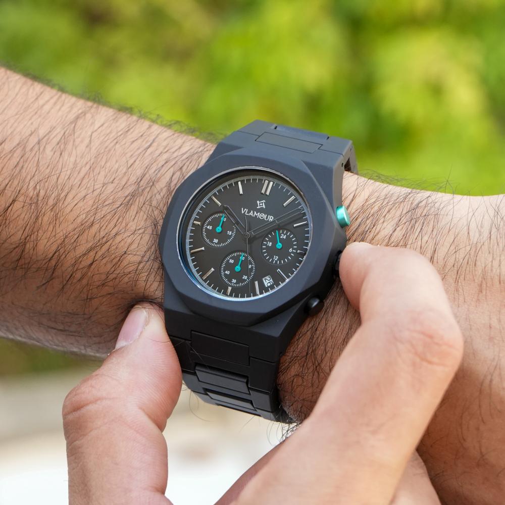 تمتاز ساعة فلامور الرجالية بوجود عدادات كرونغراف احترافية داخل المينا الرمادي الأنيق، لتمنحك القدرة على قياس الثواني والدقائق بدقة متناهية. هذه الميزة تضيف طابعًا عصريًا للساعة، وتجعلها مثالية للاستخدام اليومي أو للمناسبات التي تتطلب دقة في ضبط الوقت، مع المحافظة على لمسة الفخامة والرقي في التصميم.