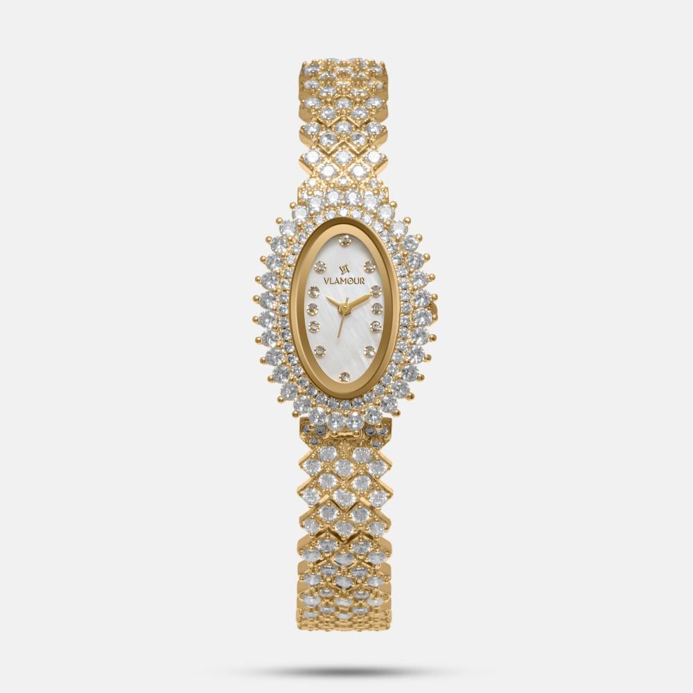 تجمع ساعة زركون نسائية بلون ذهبي من فلامور بين الأناقة العصرية والدقة العملية التي تليق بكل إطلالة راقية. تصميمها يجمع بين الميناء الأبيض اللؤلؤي والإطار المرصع بفصوص الزركون، ما يمنحها حضورًا لافتًا على المعصم. إضافة إلى ذلك، تم تصنيع السوار من الفولاذ المقاوم للصدأ باللون الذهبي ليمنح مظهراً أنيقاً مع متانة عالية تضمن الاستخدام اليومي براحة وثبات. الآلية اليابانية الدقيقة توفر أداءً عمليًا يعتمد عليه وتزيد من قيمة الساعة كإكسسوار فاخر وعملي في الوقت نفسه.