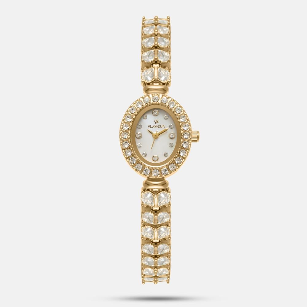 ساعة زركون نسائية بلون ذهبي