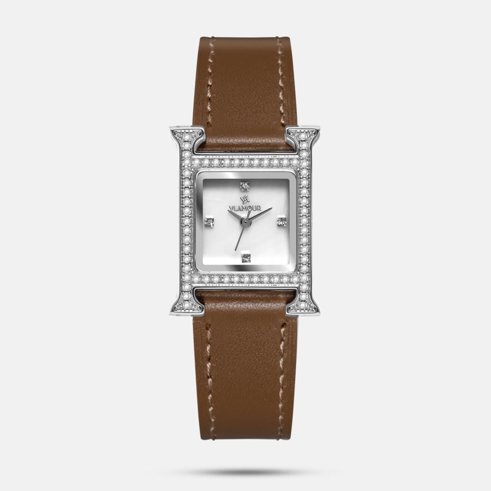 تمنحك ساعة نسائية بجلد فاخر من فلامور تجربة تجمع بين التصميم العصري والحضور الراقي. تعتمد الساعة على جلد بني فاخر وميناء مربع أبيض لؤلؤي، لتظهر بمعصمك لمسة تميز بارزة. أداء موثوق مدعوم بمكينة يابانية حديثة يجعلها رفيقة يومية مناسبة لمختلف الإطلالات، مع ضمان يدعم ثقتك في جودة الصنع.