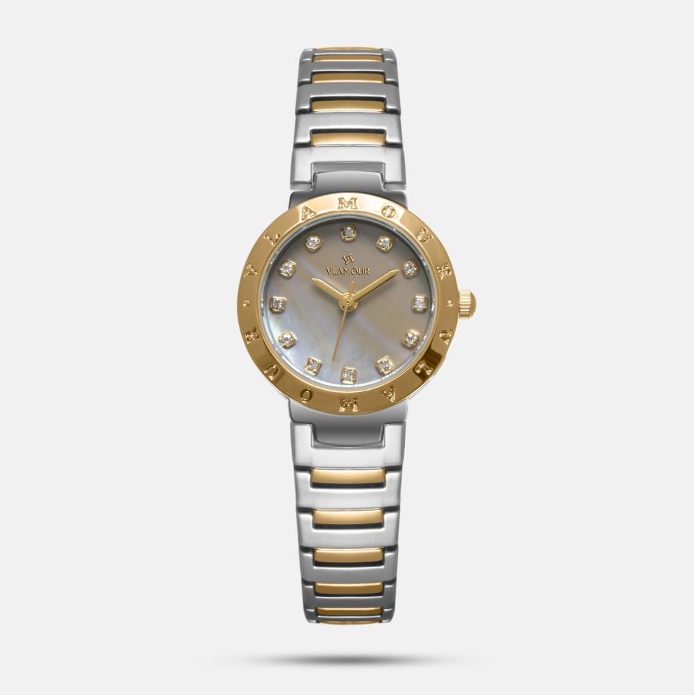 ساعة نسائية بسير ستيل بلونين فضي وذهبي