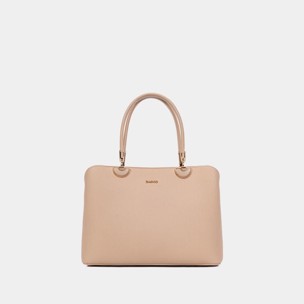 - شنطة باللون البيجي ليضفي لمسة من الأناقة لطلتك