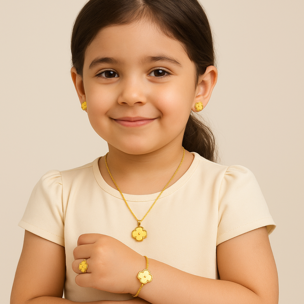 طقم أطفال بتصميم ناعم باللون الذهبي