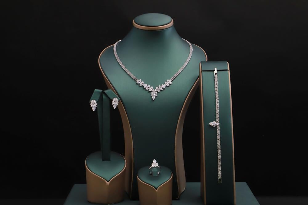 طقم نسائي فاخر مرصع بفصوص الزيركون