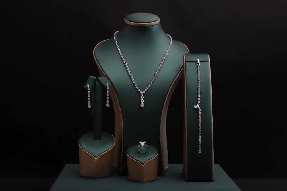 طقم نسائي فاخر مرصع بفصوص الزيركون