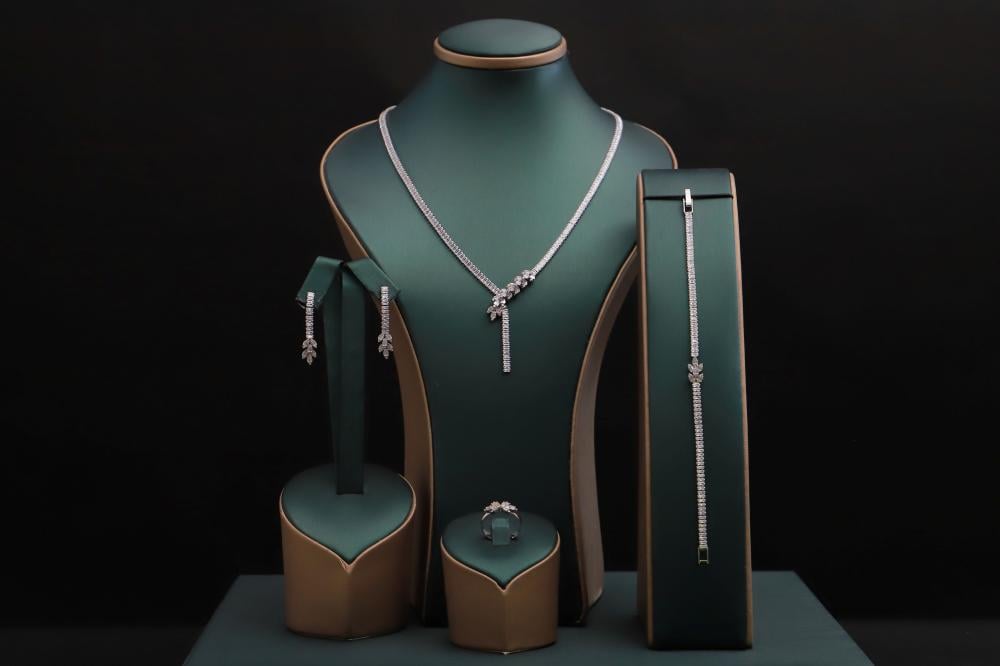 طقم نسائي فاخر مرصع بفصوص الزيركون