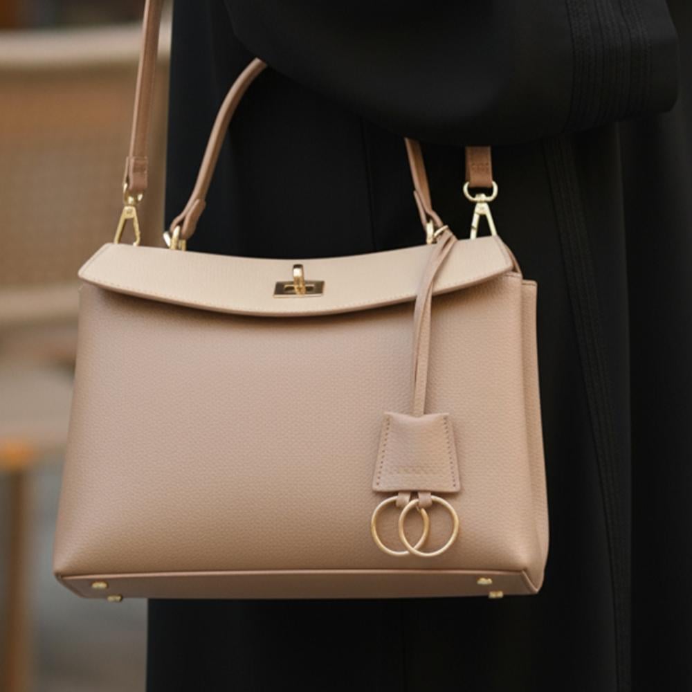 * الخامة: من الخارج مصنوعة من الجلد الفاخر بملمس مميز ولمعان أنيق، ومن الداخل مبطنة بتفاصيل راقية ومساحات منظمة لحفظ الأغراض بأناقة