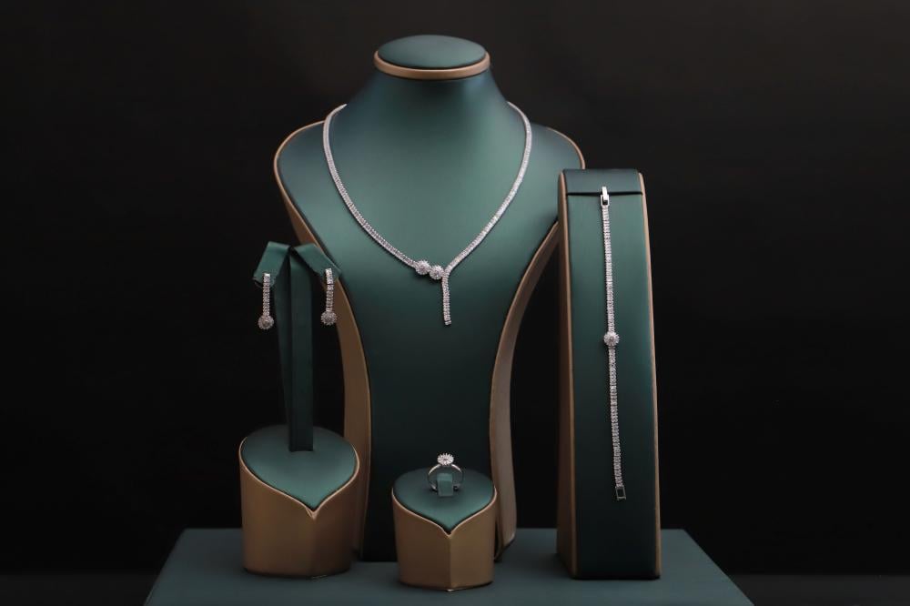 طقم نسائي فاخر مرصع بفصوص الزيركون
