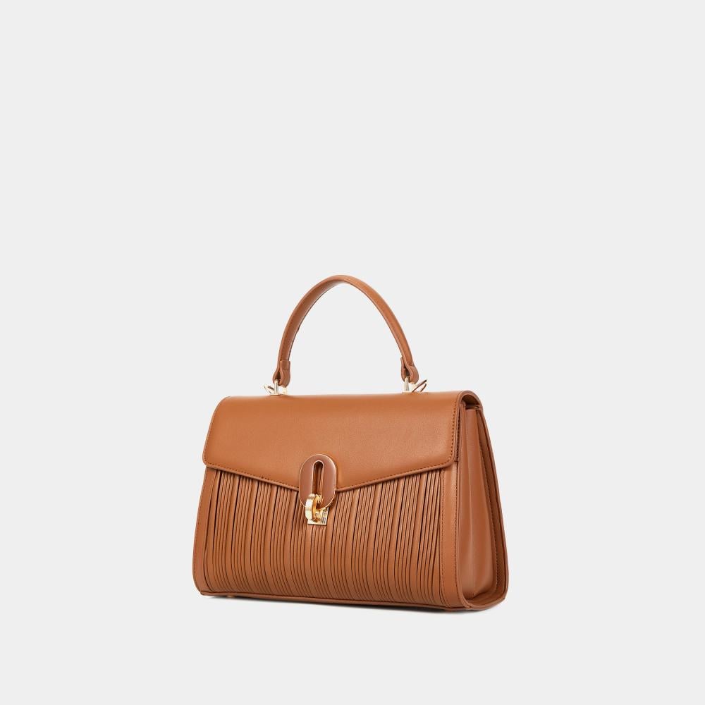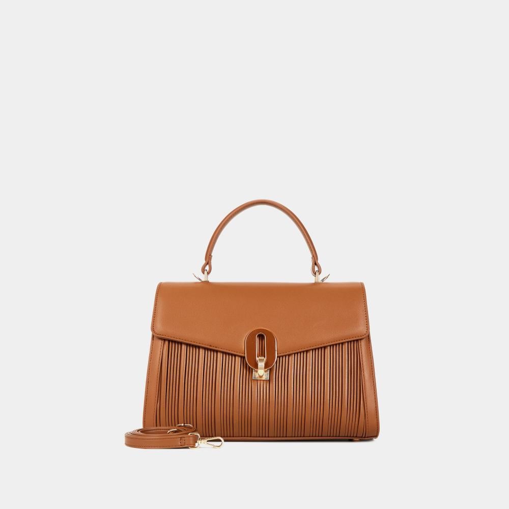 - شنطة باللون البني ليضفي لمسة من الأناقة لطلتك